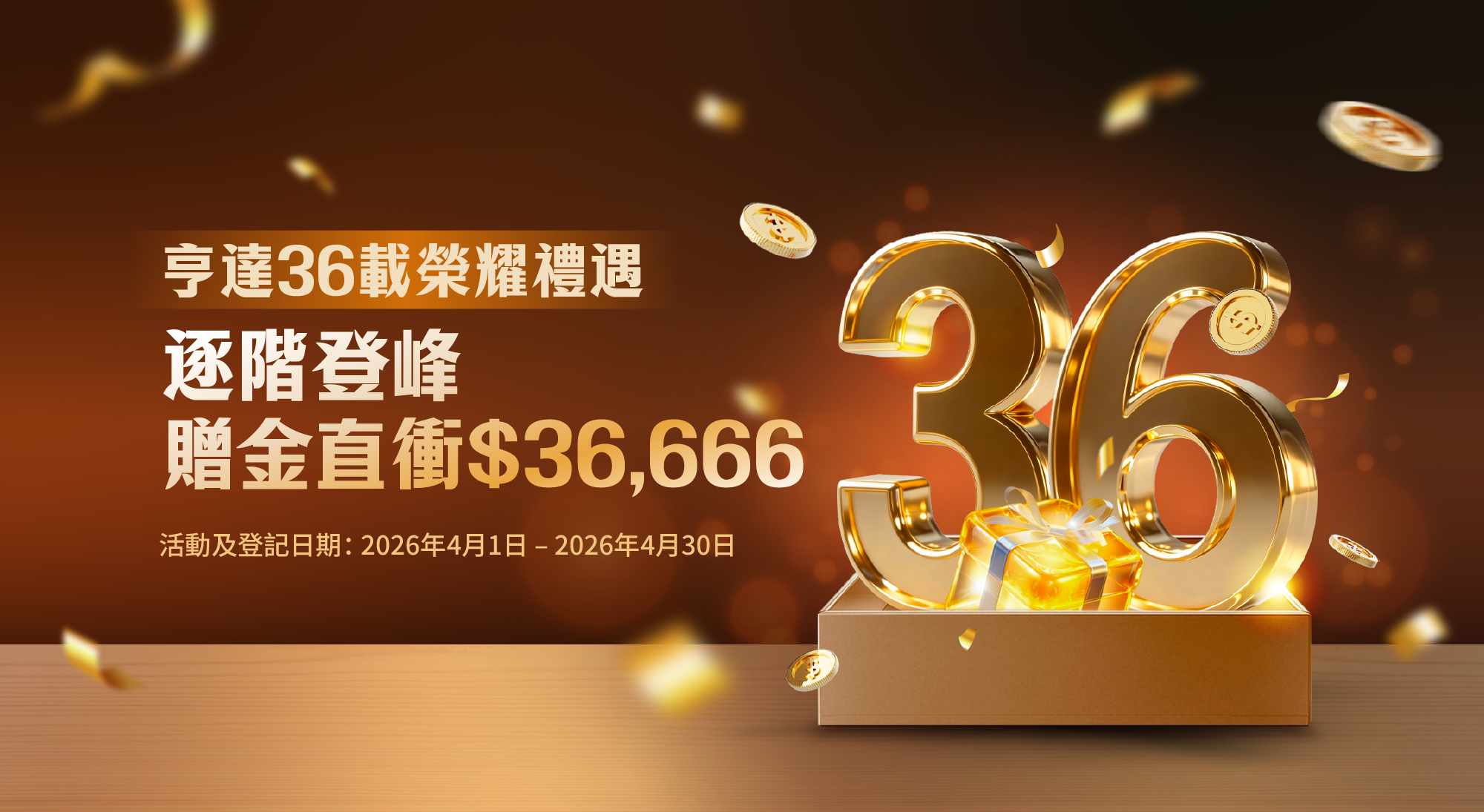 層層進階,步步加碼,讓每一次交易更具價值,與亨達共赴36載榮耀之路。