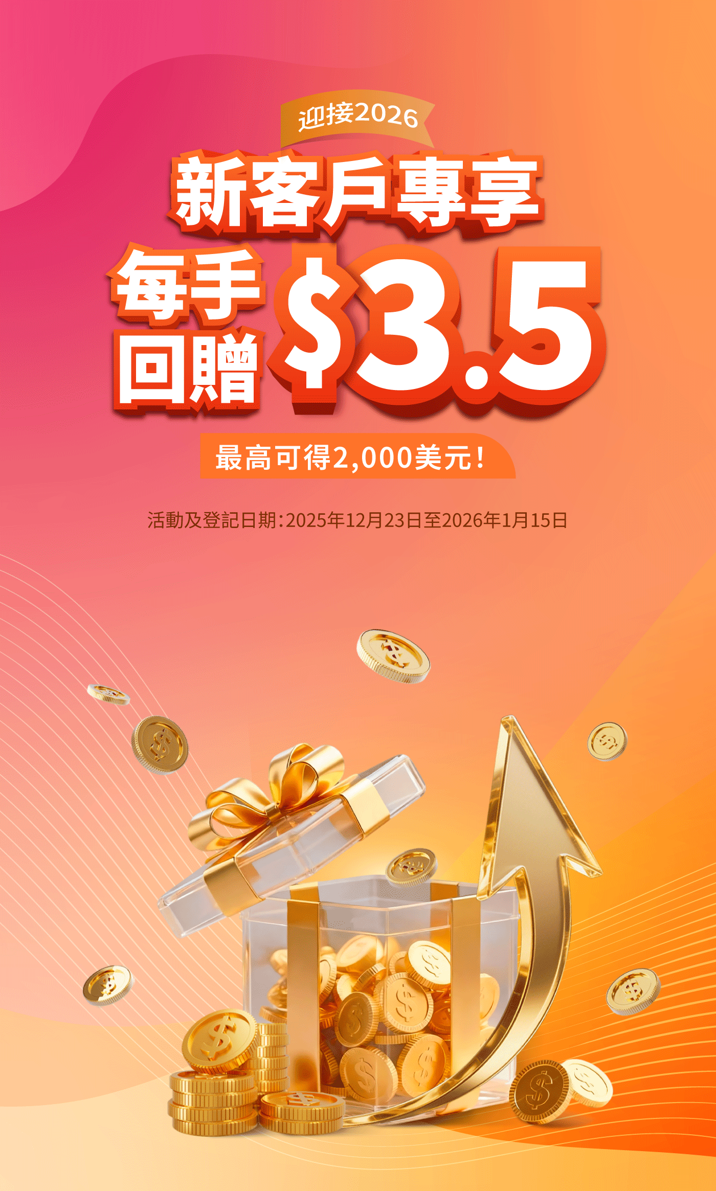 。新客戶須在活動期間內完成首次入金,最後可入金日期為2026年1月15日。